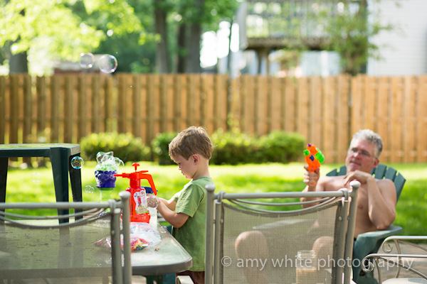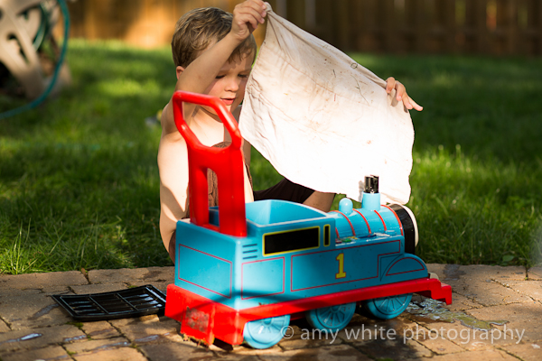 Q insisted that he take off his shirt and shoes so he could be just like papa. Then it was time to give Thomas a bath.
