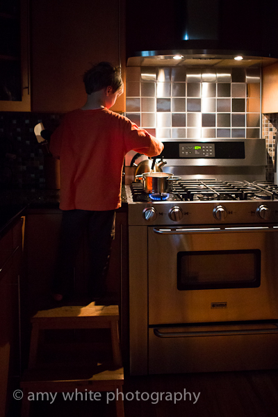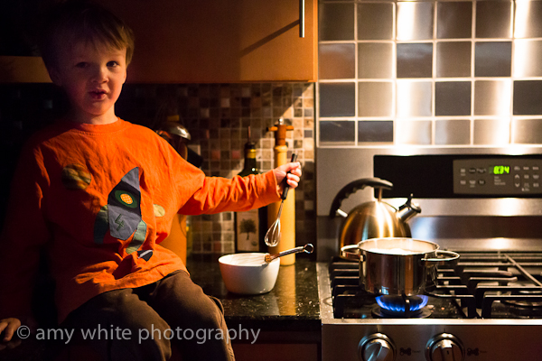 My little chef gets on food kicks and will like to eat only one thing for breakfast for a week or so. We\’ve been through PB&J\’s, PB&Honey, Muffins, Honey Sandwiches, and now we are on Oatmeal! So we\’ve been making steel cut oatmeal the last couple of mornings and my little chef likes to stir the pot. Just last night Don was commenting that Q will be an excellent photographer and cook!
