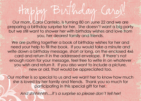Mom didn\’t want a party for her birthday but we still wanted her family and friends to be able to shower her with their love. She has made so many friends over the years and is so good about keeping in touch with friends she met 60+ years ago along with new friends she\’s made recently. Pam & I hatched a plan to get all her family and friends to send a birthday message that we could put together for her. Putting together this birthday book just emphasized what a wonderful person and friend she is to others. The notes and pictures we/she received were so beautifully overwhelming.