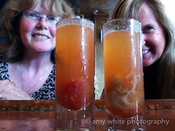 Mom was kind enough to watch the boys so Pam and I could get our oyster shooters. Cocktail sauce and an oyster topped with beer. Boy were they good!