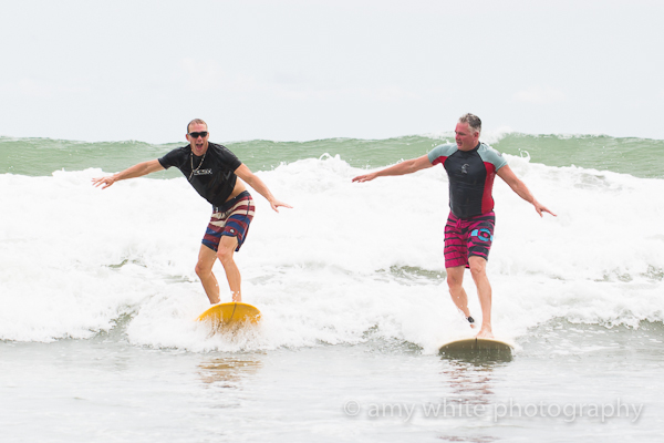Brad talked Barbara in to taking a ride on the long board and she was game. On her first wave she didn\’t even get her hair wet it was so flawless. Let\’s just say the second ride didn\’t go as well but she was quite a trooper and shook it off.
