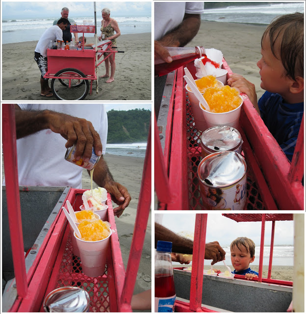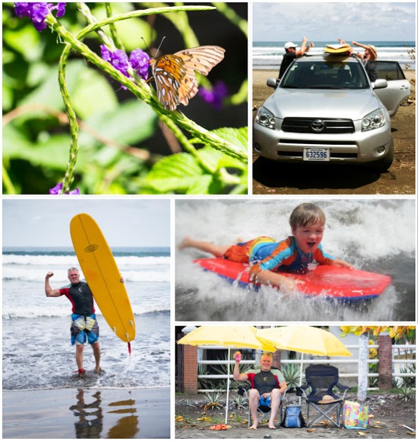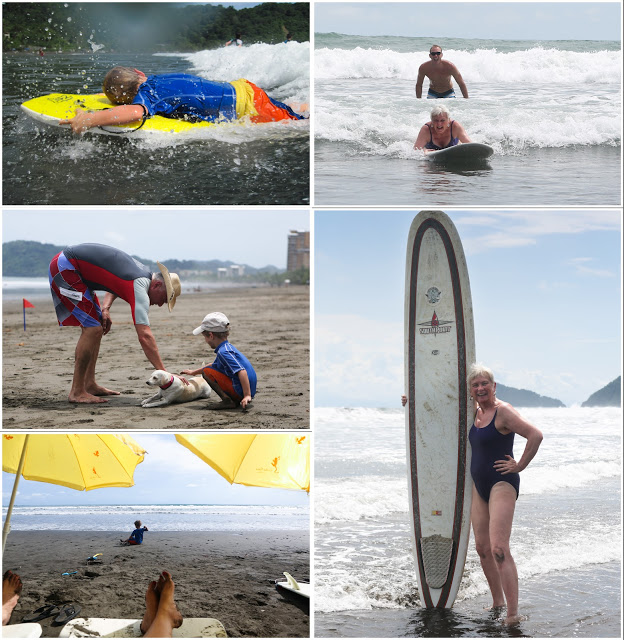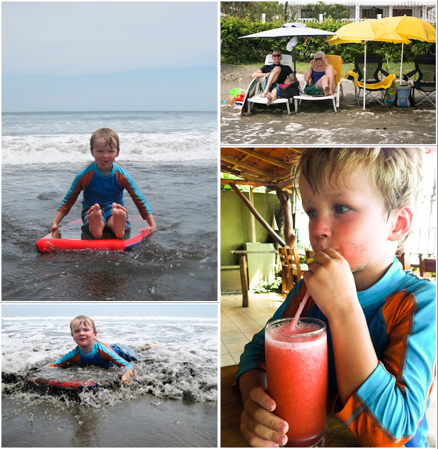 Some scenes from our day. The guys had so much fun surfing. Brad bought some boards as he will be spending a couple of months in CR. We also found a little boogie board for Quinn in our bungalow. Quinn could not love the surf and the waves more. He took them head on and would get tumbled and thrown but he was right up for the next challenge.