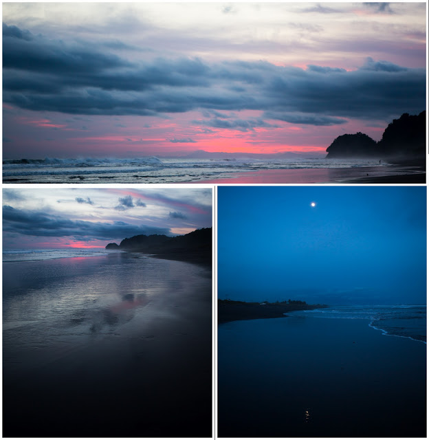 The sunsets on the black beach were just magnificent! I love reflections of the sand and I wasn\’t disappointed. There was also a full moon on Monday. The bottom image is a look one way down the beach to the sunset and the other way to the moon.