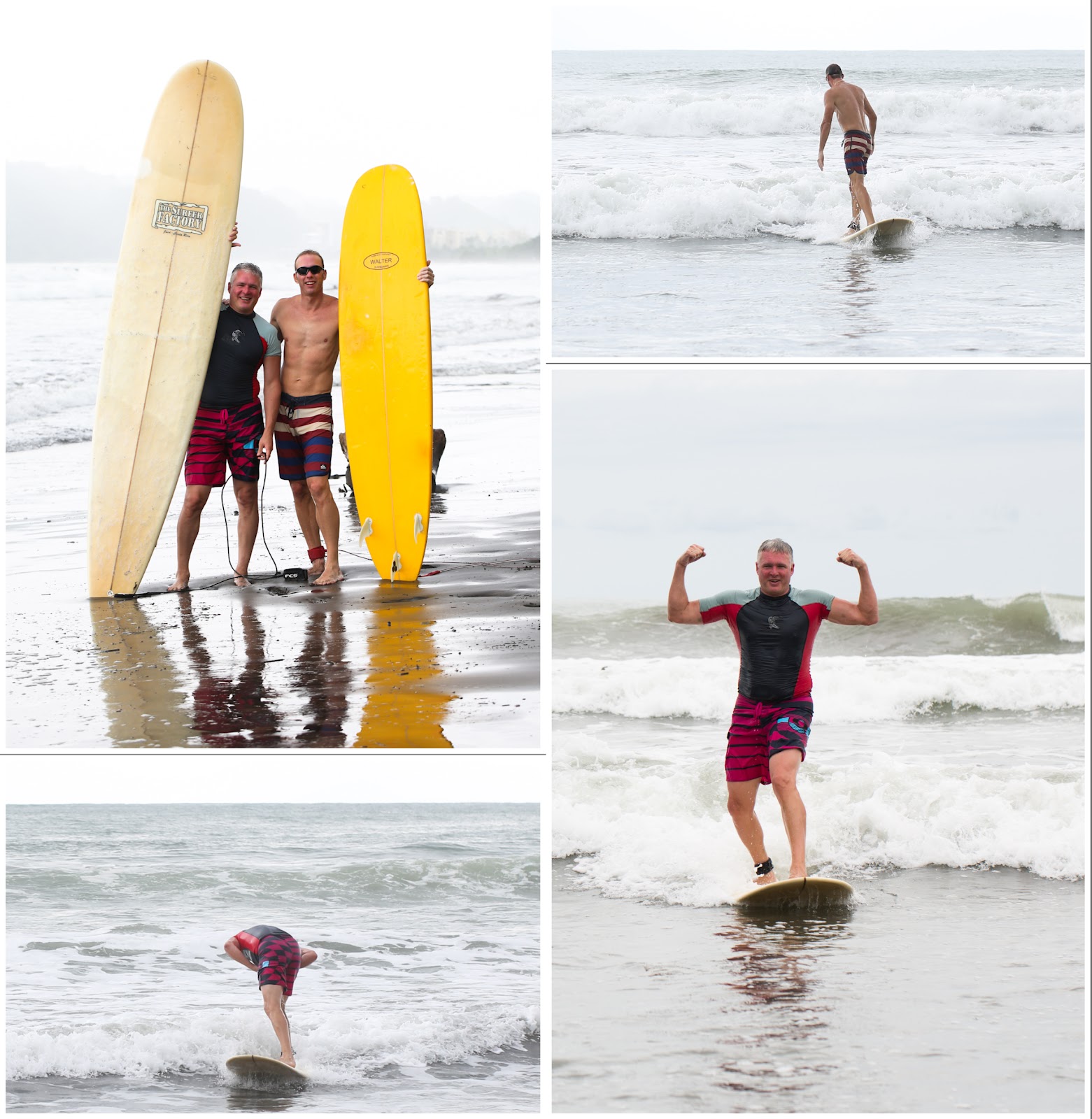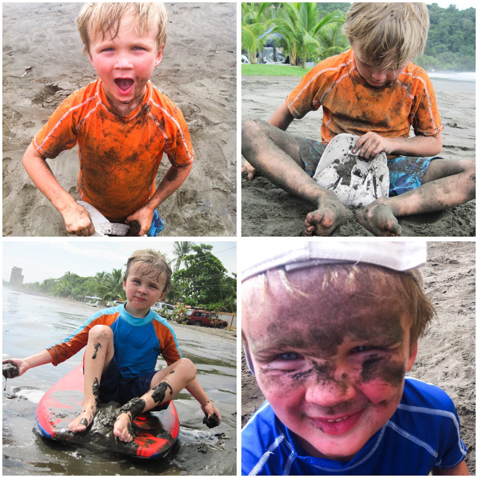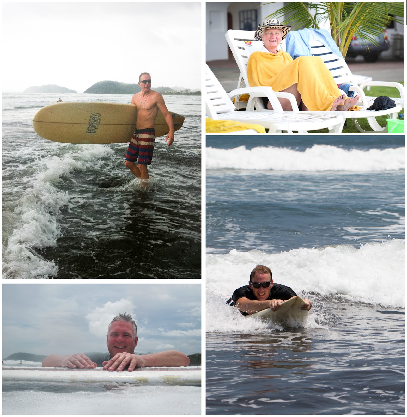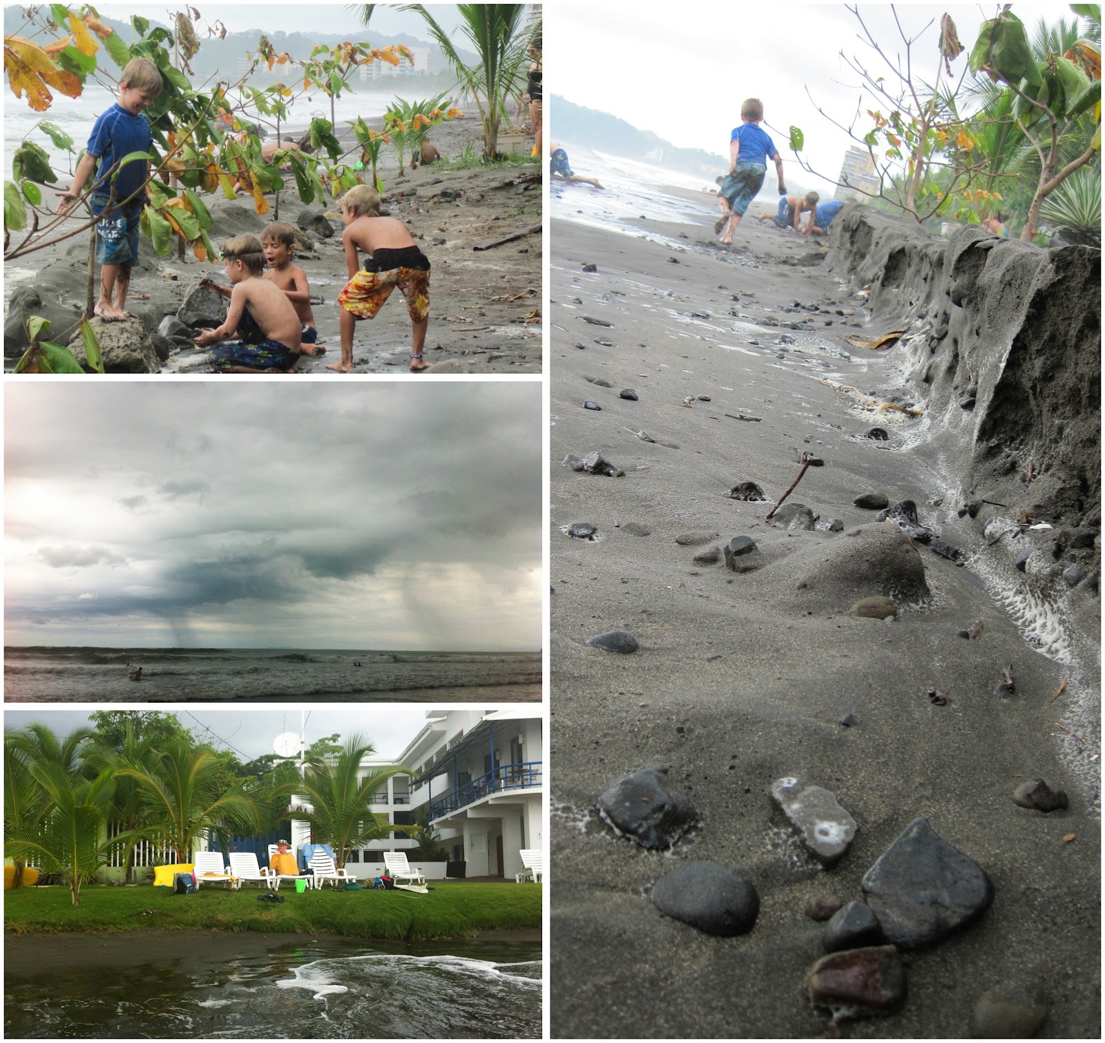 Some scenes from our day. The guys had so much fun surfing. Brad bought some boards as he will be spending a couple of months in CR. We also found a little boogie board for Quinn in our bungalow. Quinn could not love the surf and the waves more. He took them head on and would get tumbled and thrown but he was right up for the next challenge.