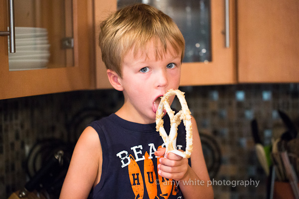 In preparation, Quinn and I baked some cookies. Quinn always asks for the beater so that he can \”lick it like a popsicle\”.