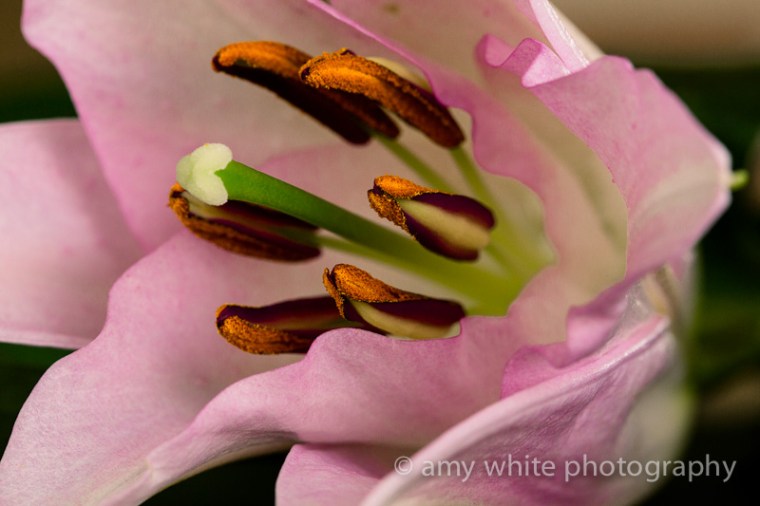 I\’m challenging myself to use just one camera lens this week. Fortunately this lens shoots both portrait style and macro. I am struggling with the macro aspect but am giving it my best try. I bought a bouquet of lilies to practice with but was pretty disappointed. I feel the need to be more macro. Here are my least hated shots (aka flower porn).