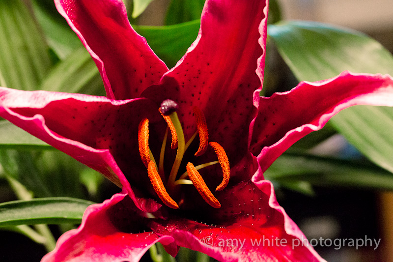 I\’m challenging myself to use just one camera lens this week. Fortunately this lens shoots both portrait style and macro. I am struggling with the macro aspect but am giving it my best try. I bought a bouquet of lilies to practice with but was pretty disappointed. I feel the need to be more macro. Here are my least hated shots (aka flower porn).