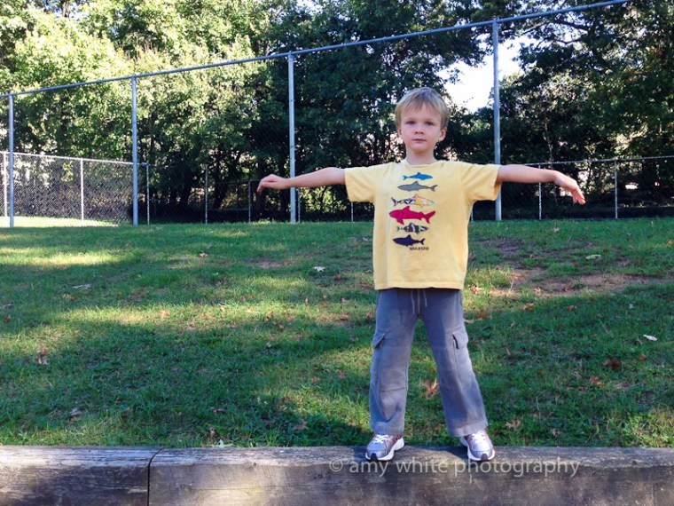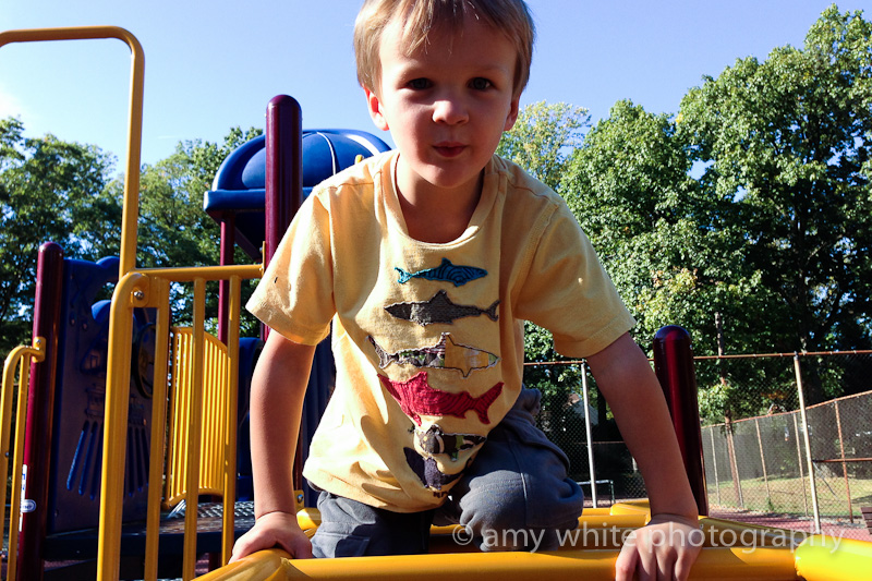 On the way home from school Monday Quinn declared an \”emergency\”. We were passing a park that I knew could accomodate his needs so we made a quick pitstop. The quick turned into an hour or more of playing on the playground. Quinn made friends with some big kids who taught him how to climb on top of the monkey bars. His weekly gymnastics class has really improved his strength and his skills.