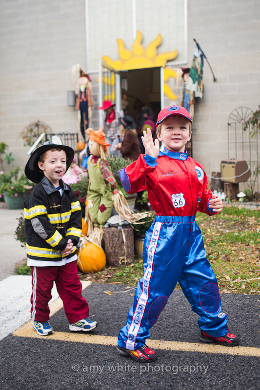 Last year we put alot of effort and hard work in to Quinn\’s costume and I think it showed. This year we hit the \”buy\” button. Nothing more american than a race car driver in his red, white, and blue costume. He was one happy boy.