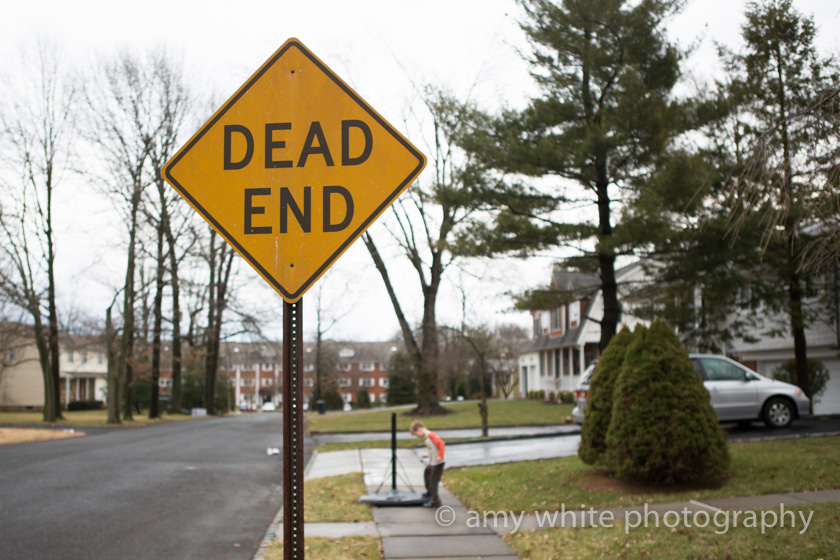 As we were turning on to our street on the way home from school today Quinn said \”Amy, what does \’dead end\’ mean?\”. I don\’t think he had time to sound them out so I guess these are just more words he knows. The list is growing.