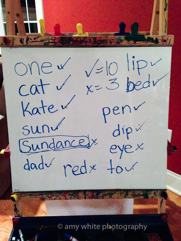 Last night I made a list of words to see which ones he could read or sound out. You can see he\’s starting to get it.