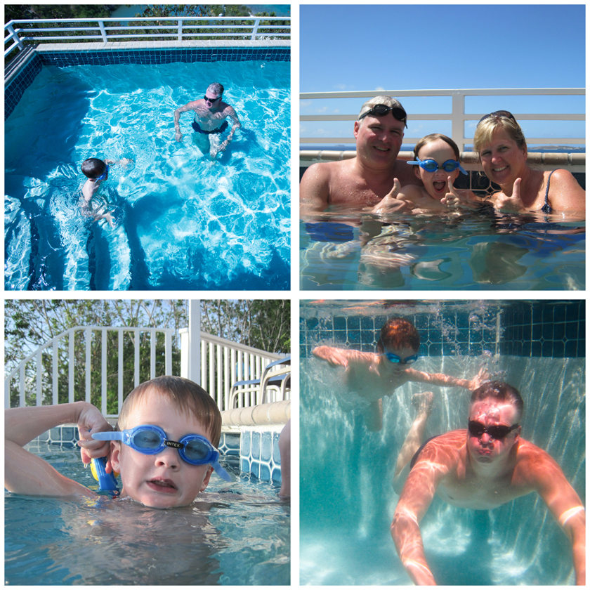 Some random pool pictures.  By the end of the two weeks, Quinn was able to swim from one long end of the pool to the other.
