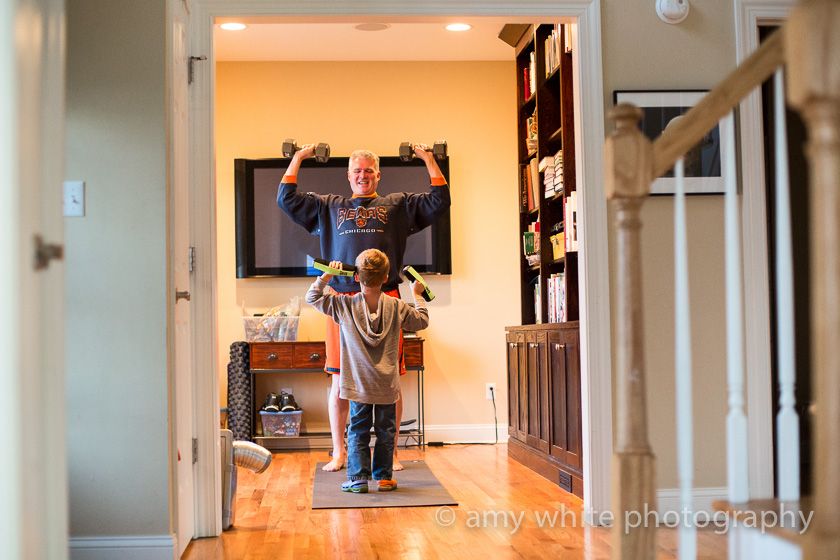 Most nights before dinner they pump iron. They love to see who can do the most reps.