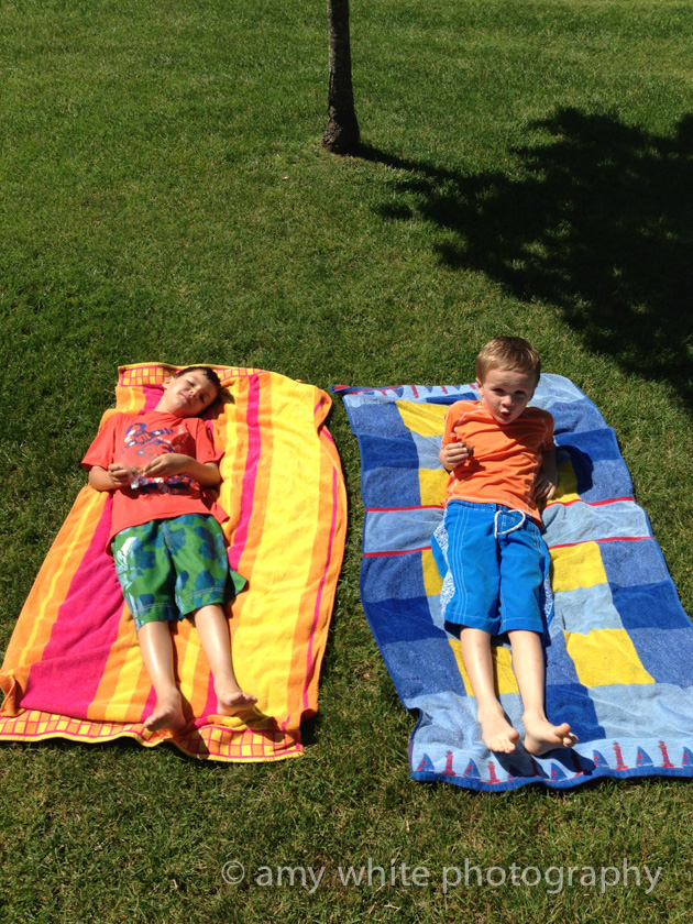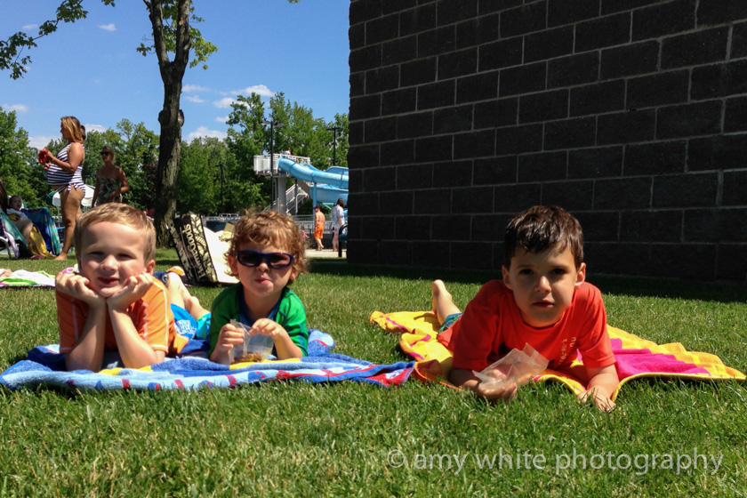 First Sami and Quinn covered Ty and starting building sand castles on him. Then Q wanted his turn. Quinn\’s little beach chair was set up next to mine, but he kept dragging it over to the end so he could sit with Sami or Ty.