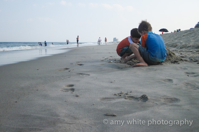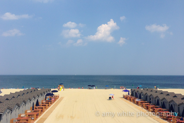 Sea Bright was hit very hard by Hurricane Sandy and the cabana that Danielle\’s family rents was demolished and had to be rebuilt. They had it ready by Memorial Day! A view off their deck over the beach cabanas and to the beach.