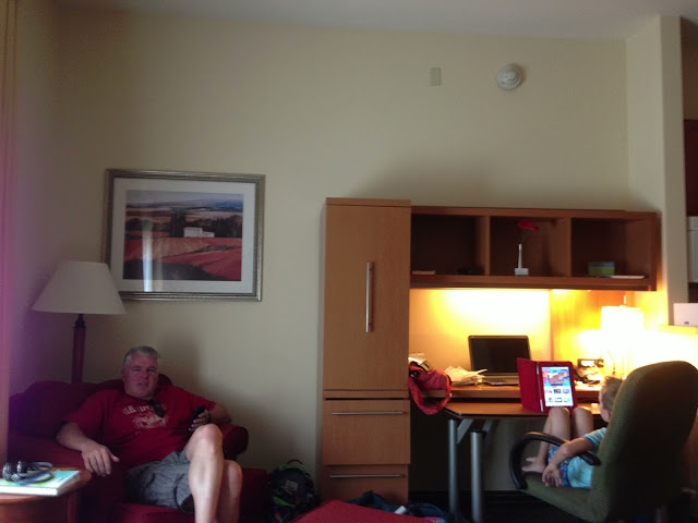 After a long trip to the hotel and a long nap for Quinn at 5 pm, we ate dinner nearby, and crashed. Well except Quinn who was well rested after his nap. I set him up in a chair with his iPad and earphones and set my alarm for midnight. By that point he was ready for sleep.