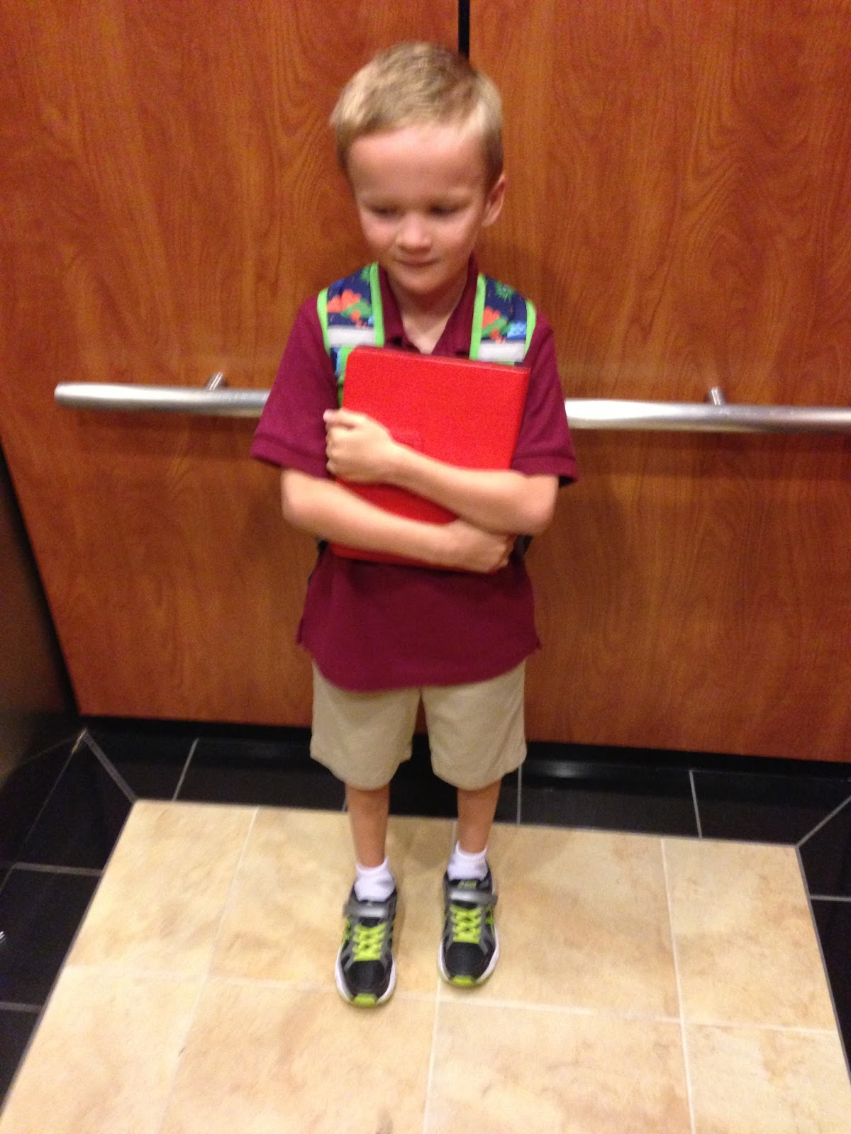 I can\’t say that I would have imagined Quinn\’s first day of kindergarten would start with an elevator ride, but so be it.