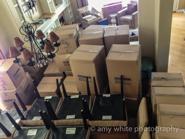 Here are the contents of the kitchen. Oh about 25 boxes that need to be unpacked.