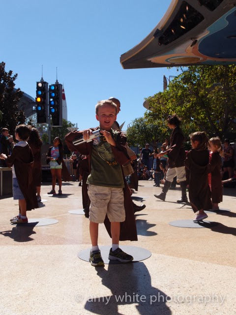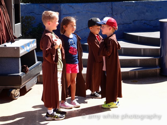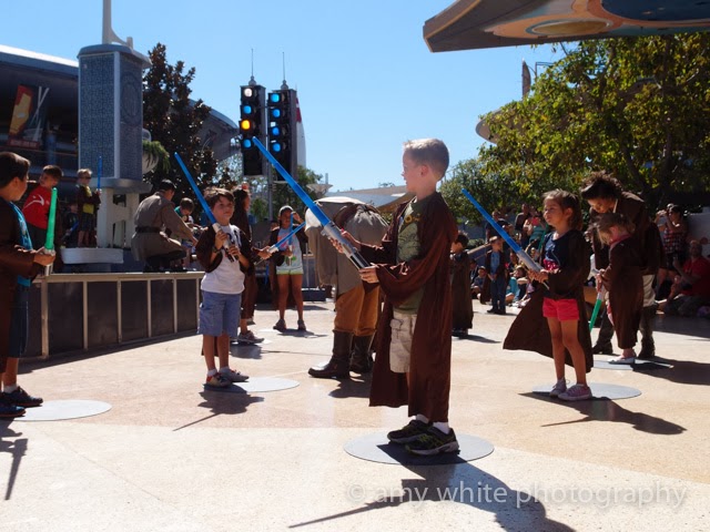 This was Quinn\’s favorite part of the trip. Jedi Training!! We had him wear his \”Yoda Man\” tshirt, his birthday badge, and jump up and down so he would be picked for the training.