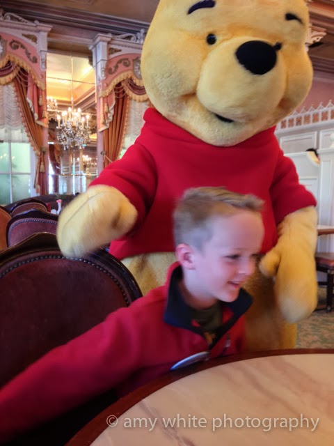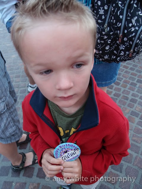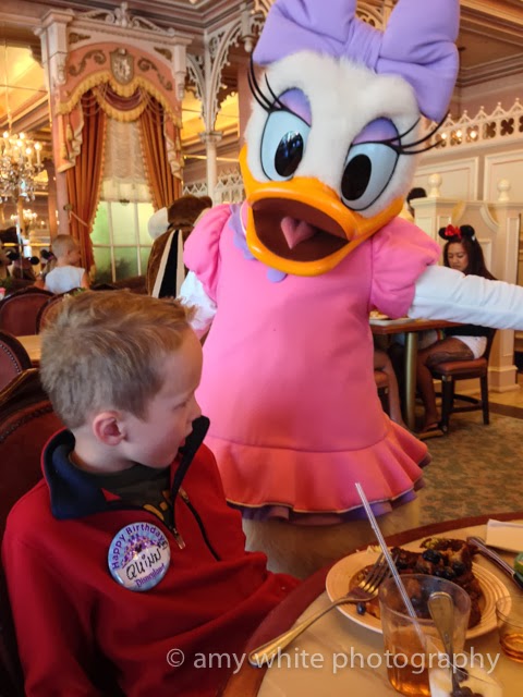 I had made reservations for a character breakfast at 10 am in the park. Quinn didn\’t really enjoy the character part of the breakfast. They were all pointing out his birthday badge but Quinn wasn\’t quite in the happy birthday zone yet.
