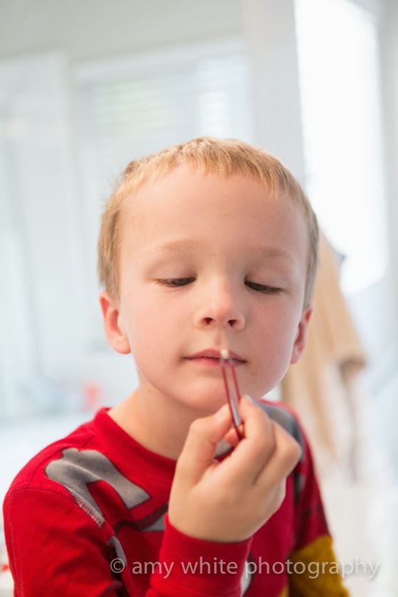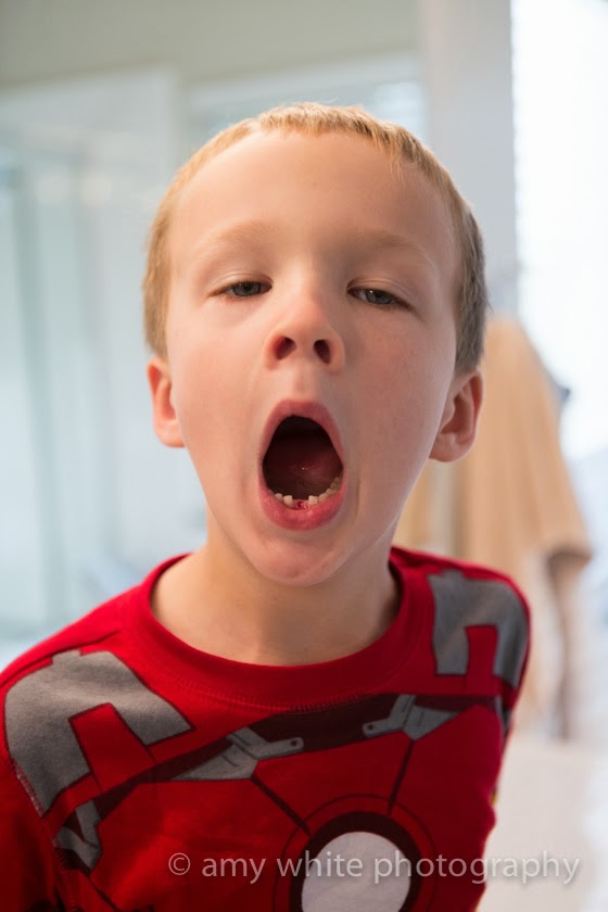 Quinn\’s two bottom teeth have been wiggly for the last couple of weeks. On Wednesday I noticed him doing something weird with his tongue and it was a very loose tooth. Thursday morning he woke up and really started working it and during breakfast asked me to get the tweezers to pull it out. He told me to pull the flat one because it was at a 90 degree angle and also to pull slowly.