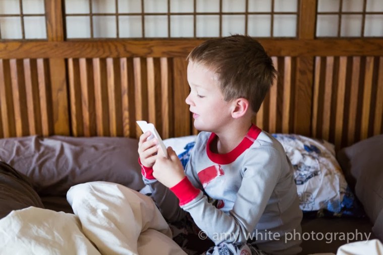 I was getting ready in the bathroom this morning and Quinn woke up early and started looking to see if the tooth fairy had visited.