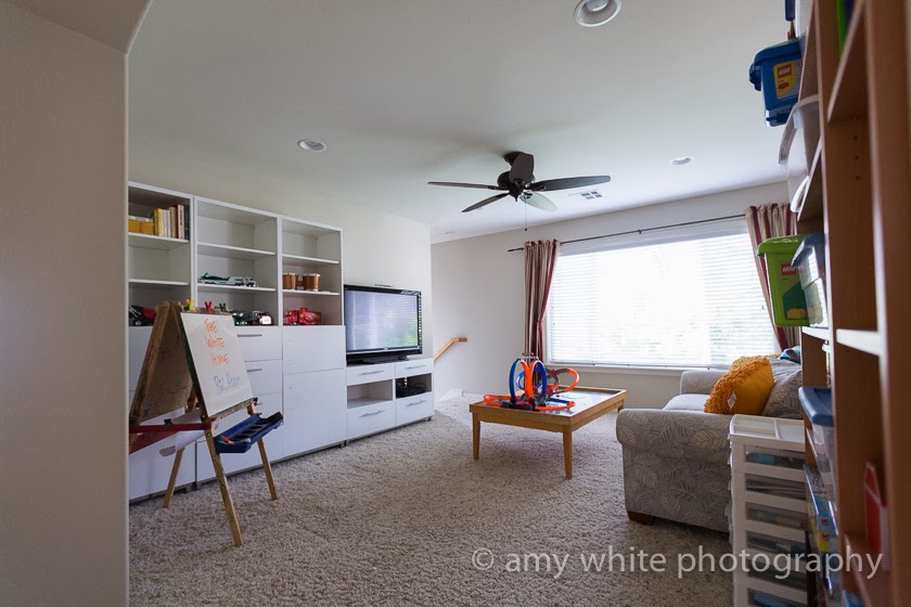 It\’s nice to have one more room unpacked and just about finished. Our new house has an open area on the 2nd floor between the master bedroom and the other 2 bedrooms. We decided to make it our family rec room with a TV, wii, games, toys, etc. A place for us to hang out as a family and for Quinn to hang out with his friends.