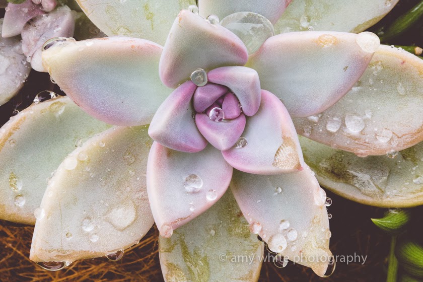 We had some rain last week and the succulents in the yard hold lots of perfect drops of rain.
