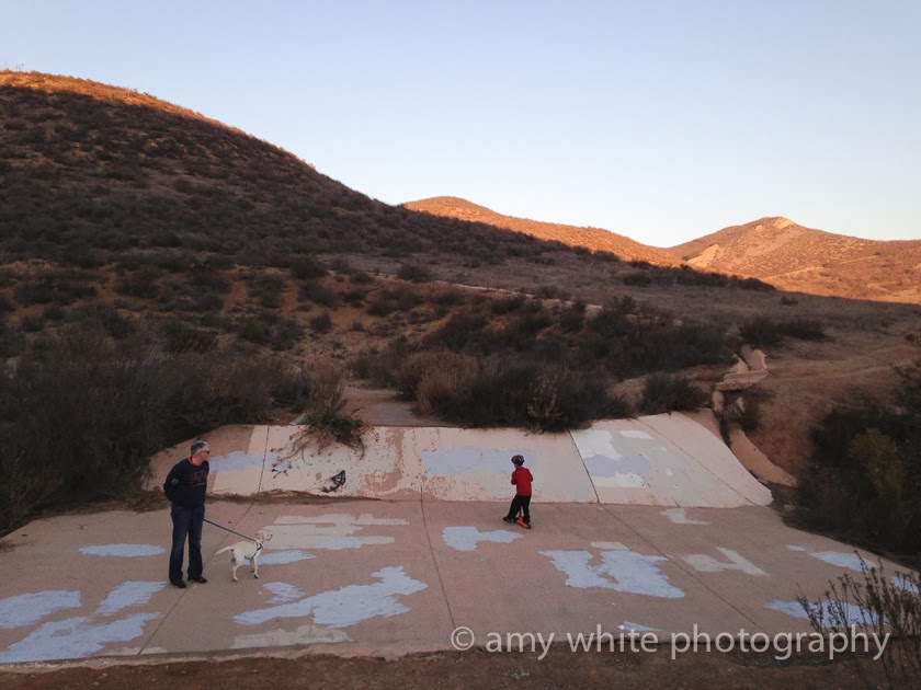 Don stumbled upon this \”half pipe\” in the middle of seemingly nowhere not too far from our house. And the path is paved the whole way there so Quinn could scooter. Don scored a geocache right around here — it warned to beware of snakes in bushes!