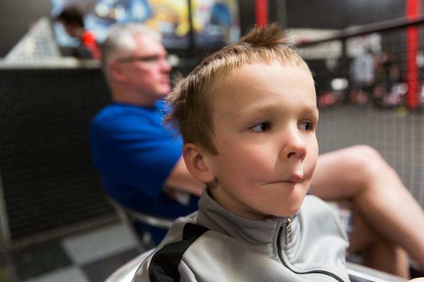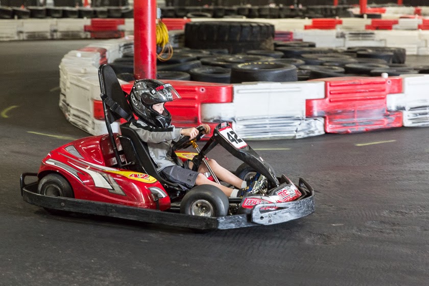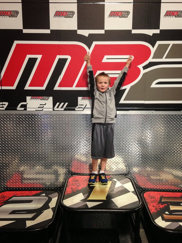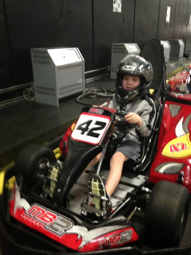 Quinn went to a birthday party on Saturday and one of the moms was telling me about a go cart racing track so we decided to give it a try.