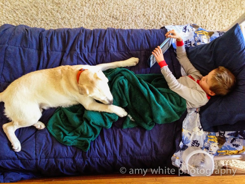 On Friday Quinn was not feeling so great so he and I had a quiet day at home. Starting with going back to bed for extra cuddle time.