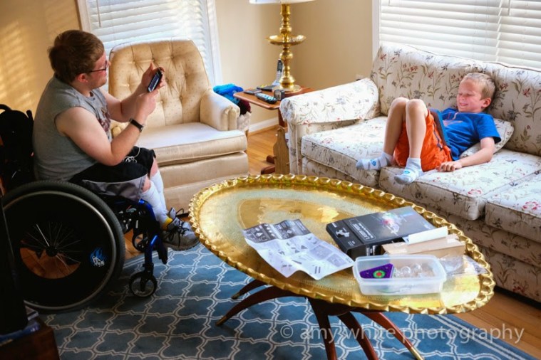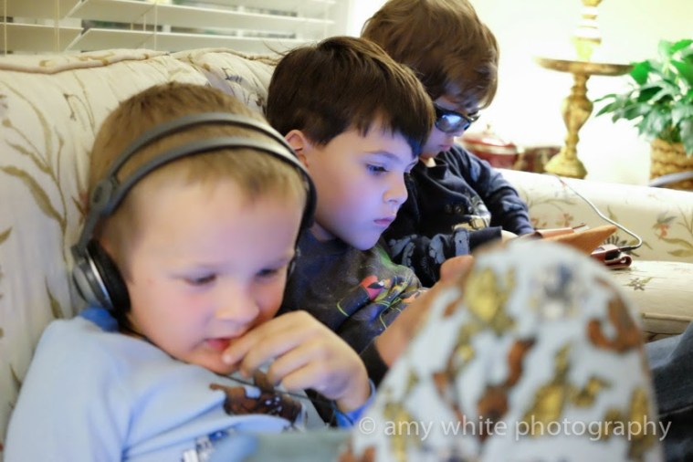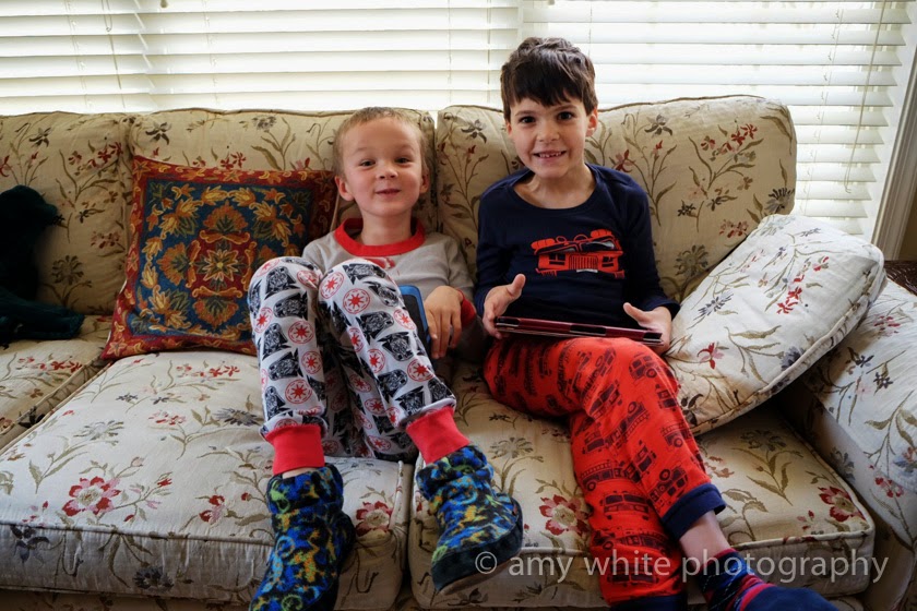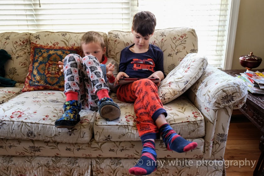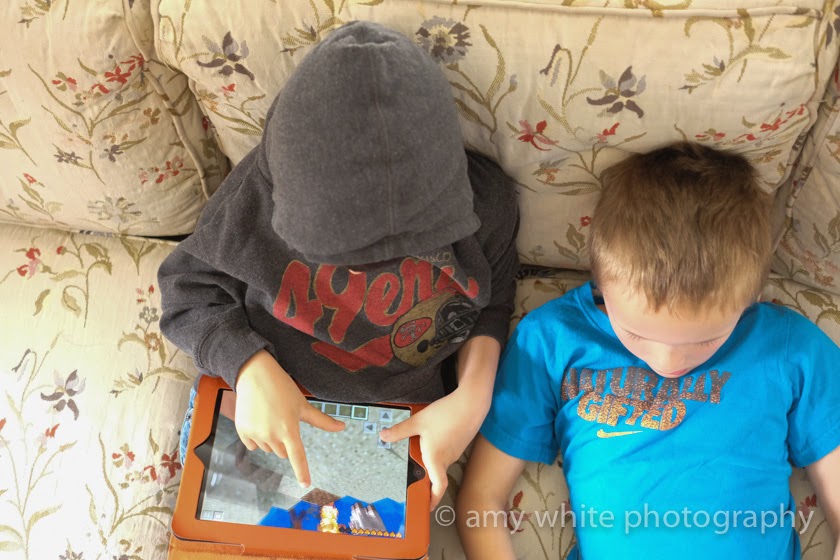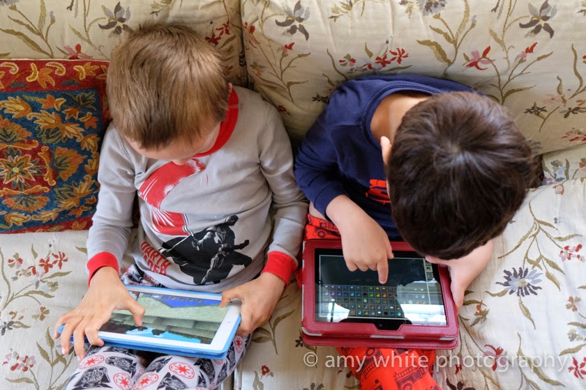 Minecraft in the morning. I love seeing these two together and they way they sit so close and happy together.