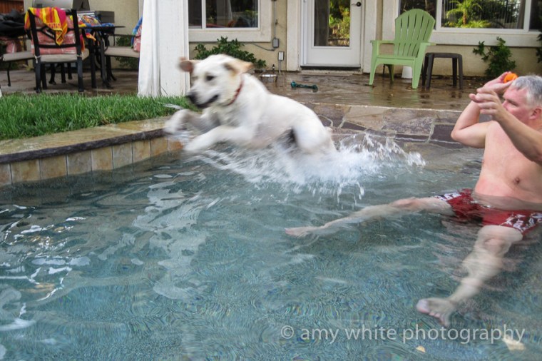It\’s amazing how Sonic just knew how to leap like this in to the water. All that Labrador Retriever was in him, it just all came out today.