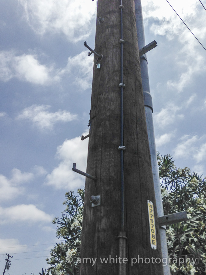 Do you see this cache? It\’s hanging high on this telephone post. It\’s the tiny silver tube on the ring. You had to use a pole that was hidden in a bush to get to it. Pretty unique.