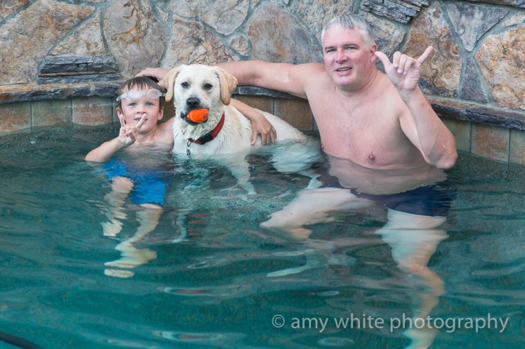 After a full day of caching we ended our day with a family swim party. Look at Don and his two boys hanging out on the seat in the deep end.