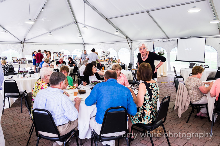 The event was held in a covered tent in a beautiful park.