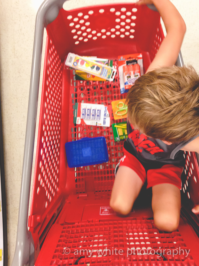 We went back to school shopping with the school list of supplies for 1st Graders. We also picked out a new backpack and lunchbox. This year he picked out a graffiti backpack with skeletons. Where is my baby boy?