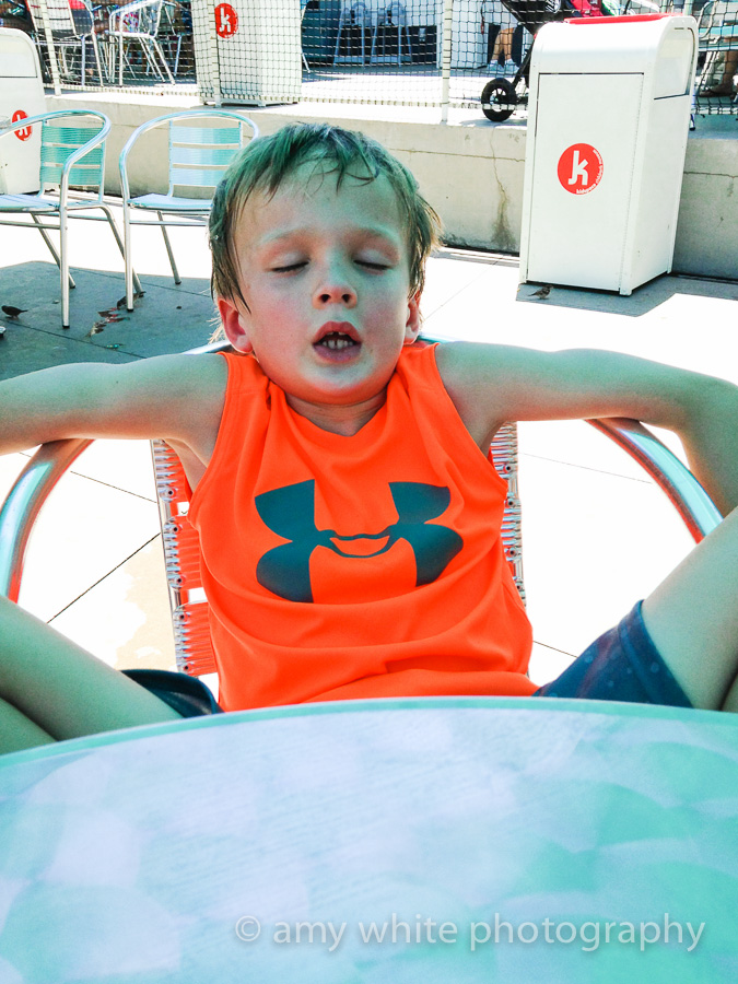 All that climbing made for one hot boy. Time for some shade and lunch.