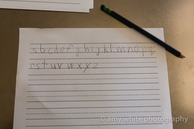 Until this morning. He had 2 upper case and 3 lower case to finish his challenge. I told him he could knock it out pretty quickly if he sat down and did it. And he did!