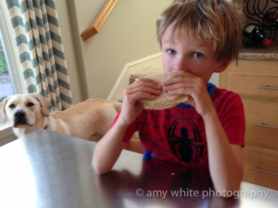 After his nap he woke up feeling pretty good and was ready to eat. He ate breakfast, lunch, and dinner all within about 2 hours. Toast with honey, mom\’s amazing sandwich, and some croissants. He\’ll stay home from school on Monday but I think he\’s going to be a-ok.