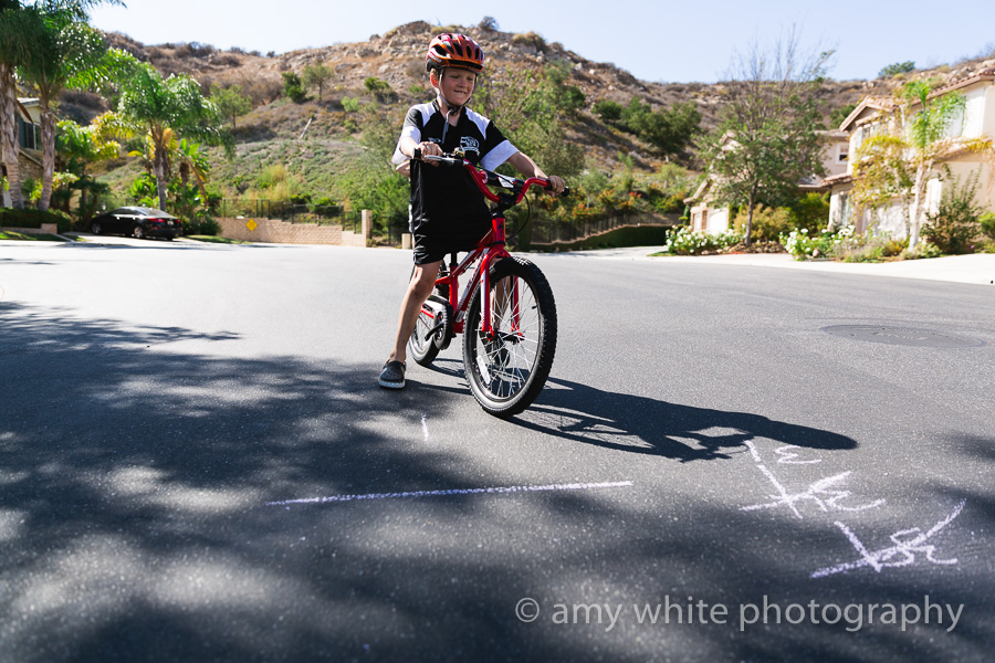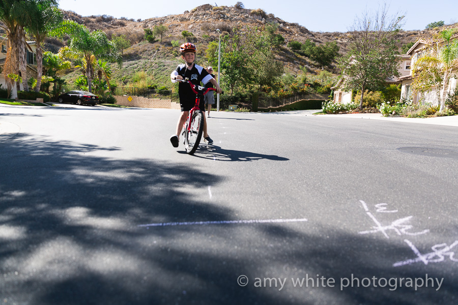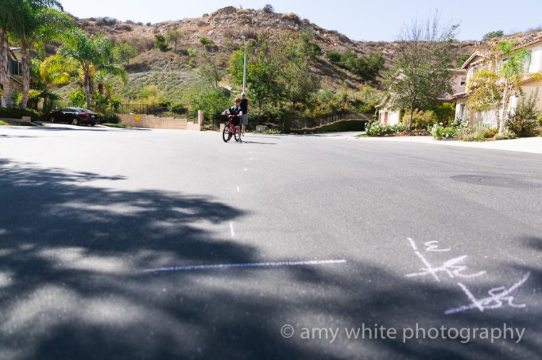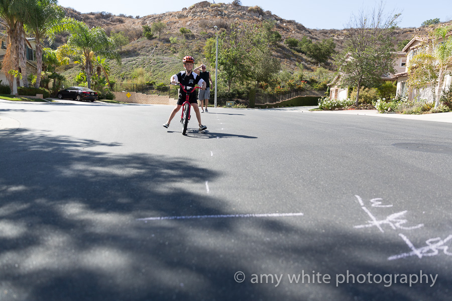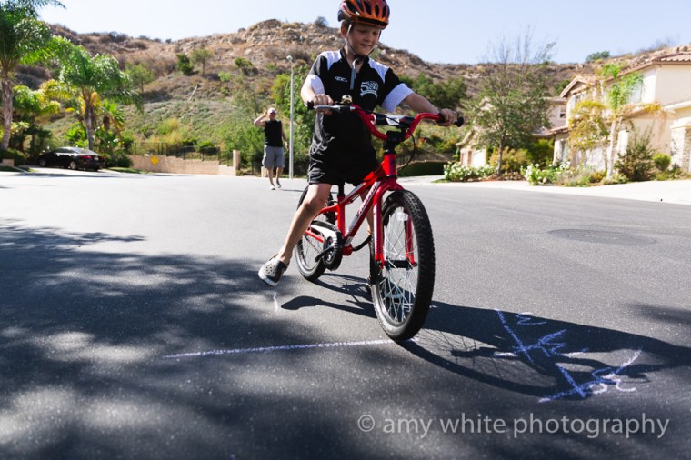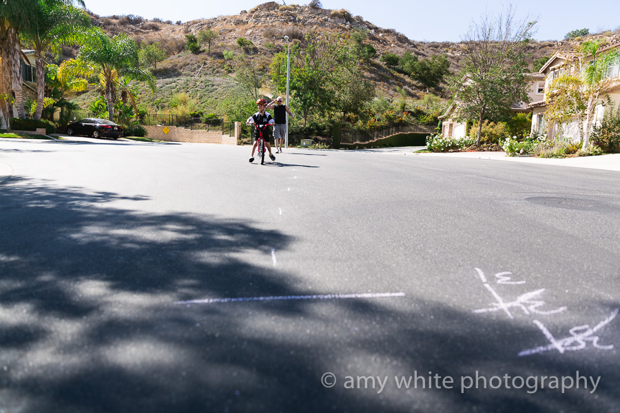 We just got all of our bikes tuned up, and boy did then need some tuning. We took the training wheels and pedals off of Quinn\’s bike. Trying to teach him to glide and balance on the bike. Don was encouraging him to take great big strides and we were counting how many strides from one line to another. You can see he was improving each time.