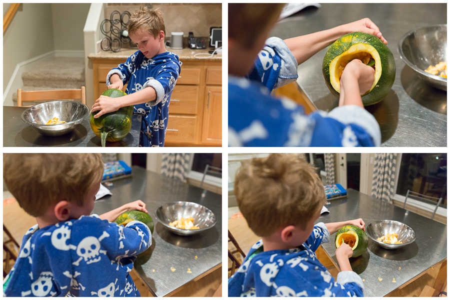 He insisted we buy a pumpkin carving set when we got our pumpkins and that was the only thing he would use.