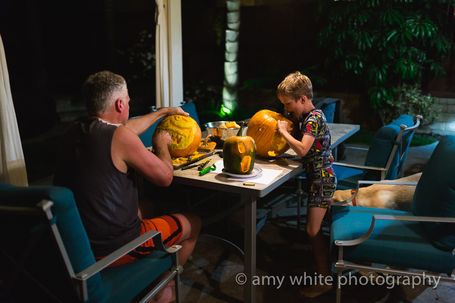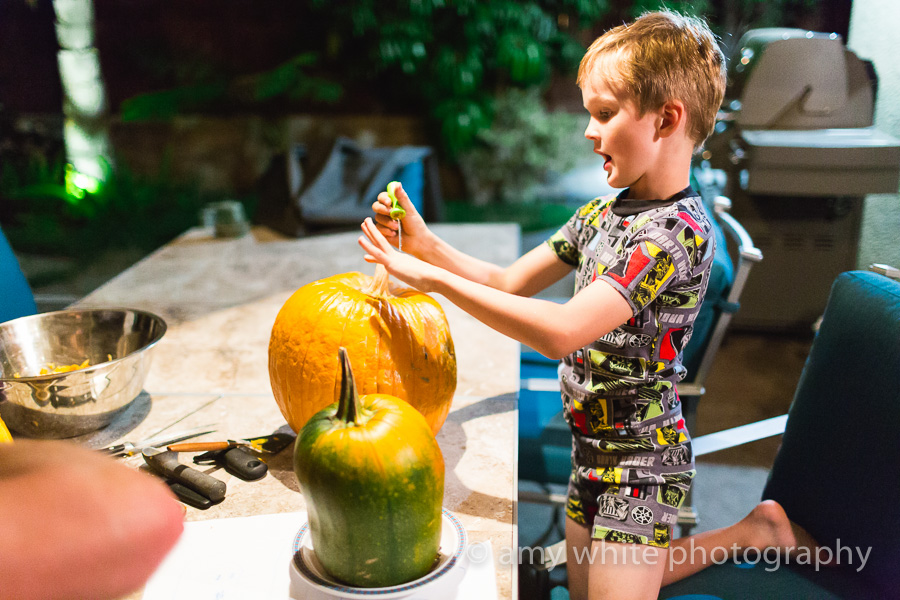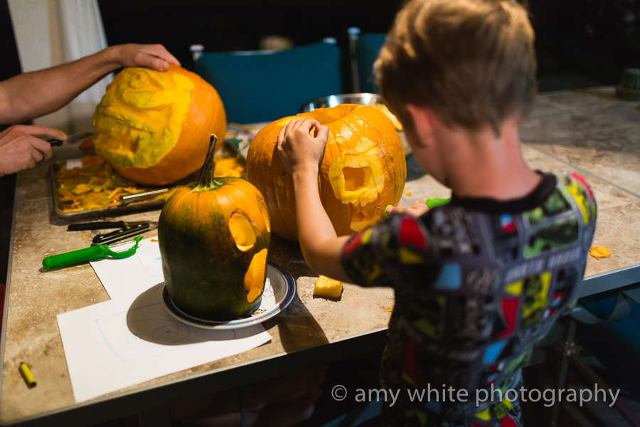 Tuesday after school Quinn and I went up to Underwood Farms to pick out a pumpkin for all of us. After swim practice Quinn carved his pumpkin.