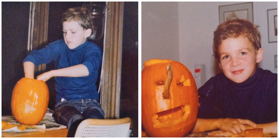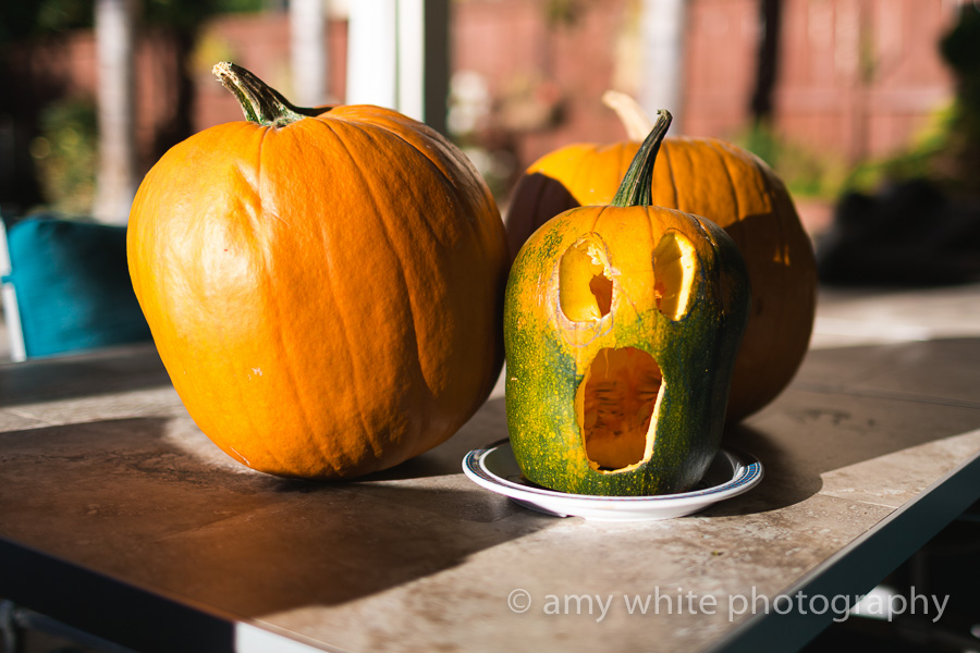 Mae sent Quinn a really cute homemade book with pictures of Don carving his pumpkin at age 7. No surprise our boy likes an unconventional pumpkin too 🙂