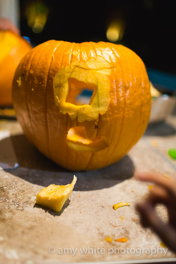 It seems like we are always late in carving our pumpkins, but we got them done!