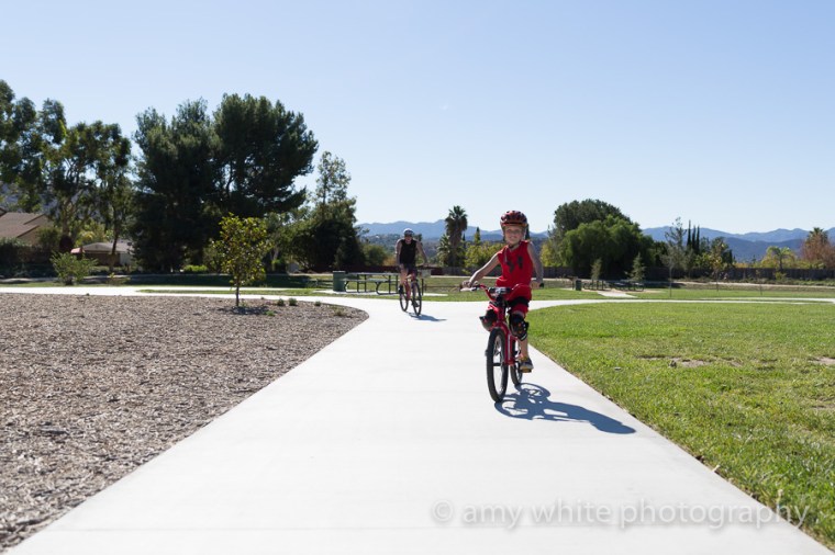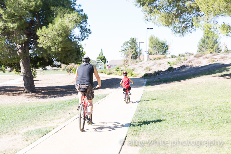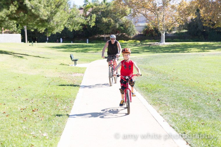 Saturday morning bike ride at our local park. He\’s gained quite a bit of confidence. Don is riding a bike that Brad gave him so now Quinn and Don have matching red Specialized bikes.