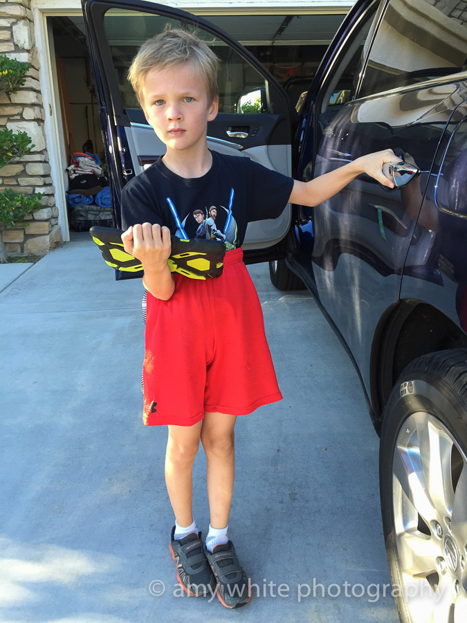 His old man shorts. When we got out of the car to walk to school I asked him to fix them because he looked ridiculous. He said \”But I like to look ridiculous.\” 🙂