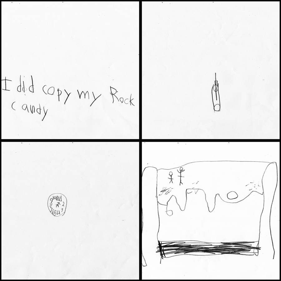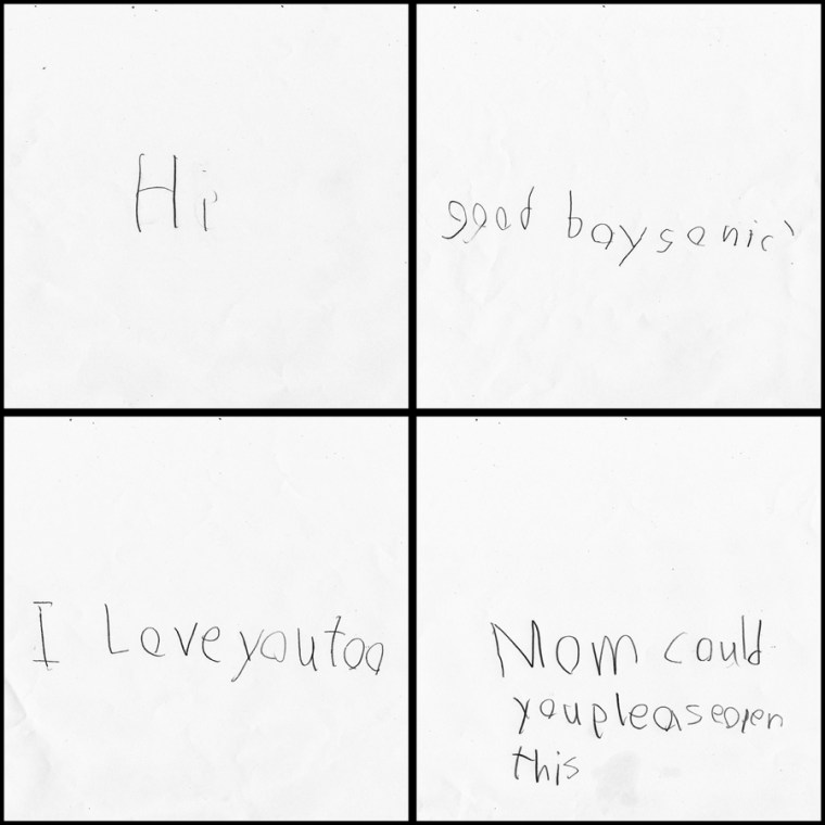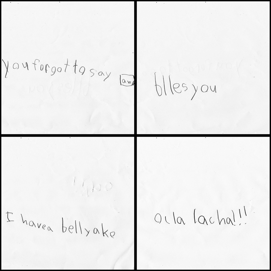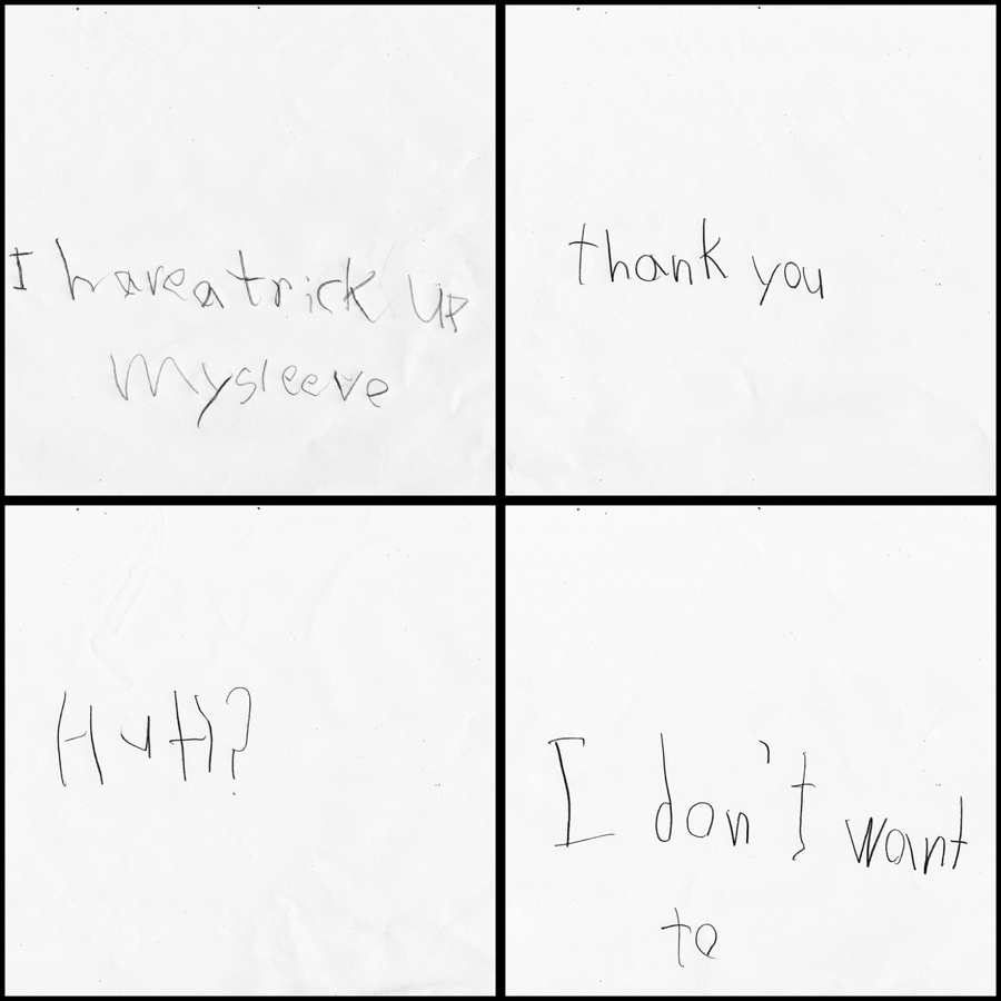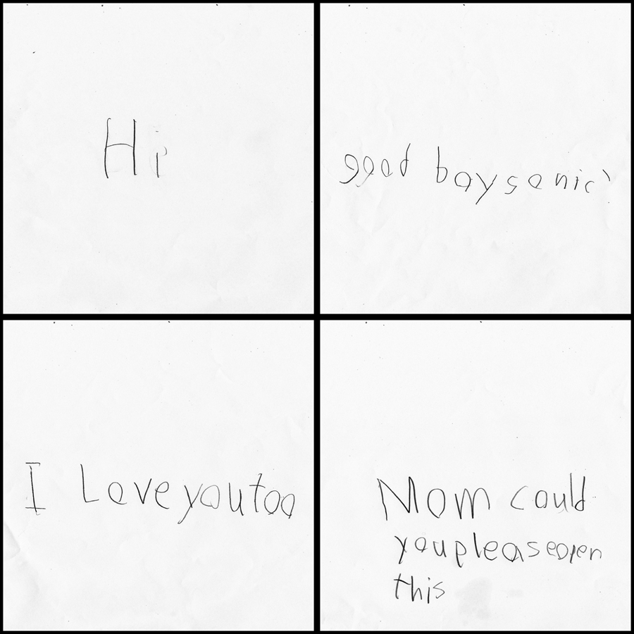He wrote these on regular 8.5×11 paper but I cropped them square so I could do this.