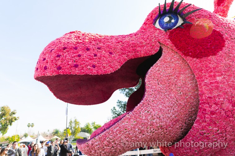 Loved this shock of pink! This was the Zappos float. The inside of the mouth of the hippo is completely covered in pink flowers. Wow!!