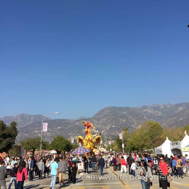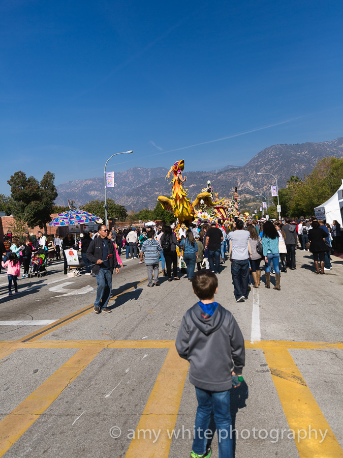 The floats are at the end of the parade route in Pasadena and we were lucky to have our first warm day in a while.
